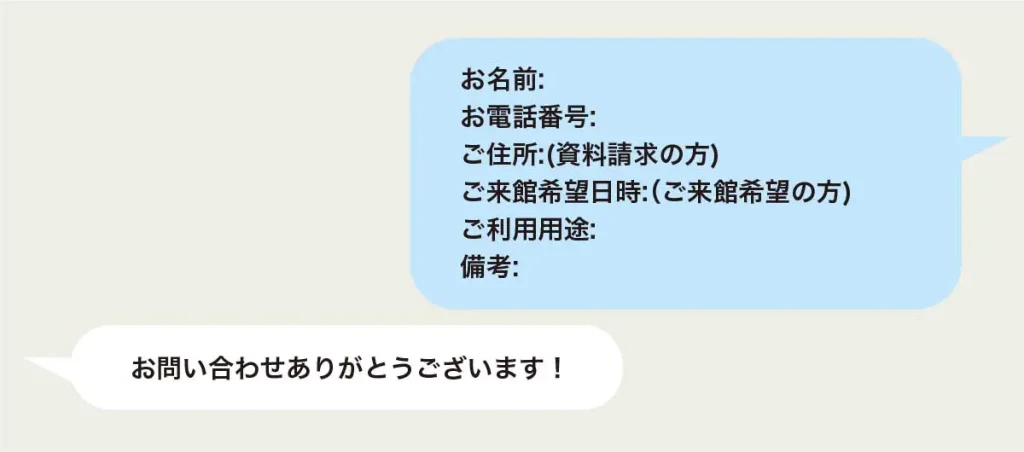 お問い合わせいただきました内容は、スタッフが確認次第、ご返信いたします。お急ぎの場合はお電話またはLINEなどでご連絡いただけますようお願いいたします。数日を経過後も返信がない場合は、エラー等が考えられます。大変お手数をおかけいたしますが、お電話でご連絡いただけますようお願いいたします。