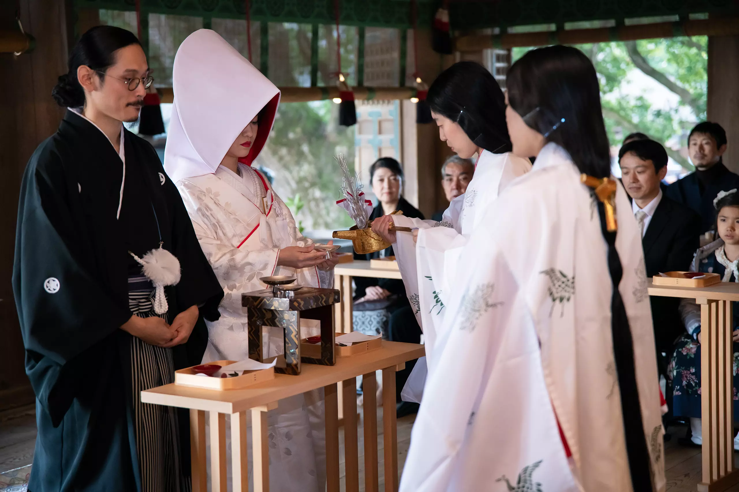 神社挙式はどのように予約し、どのような準備が必要で、料金はどれだけ必要なのか?式後の食事会や披露宴までの手配はどうすればいいのか?