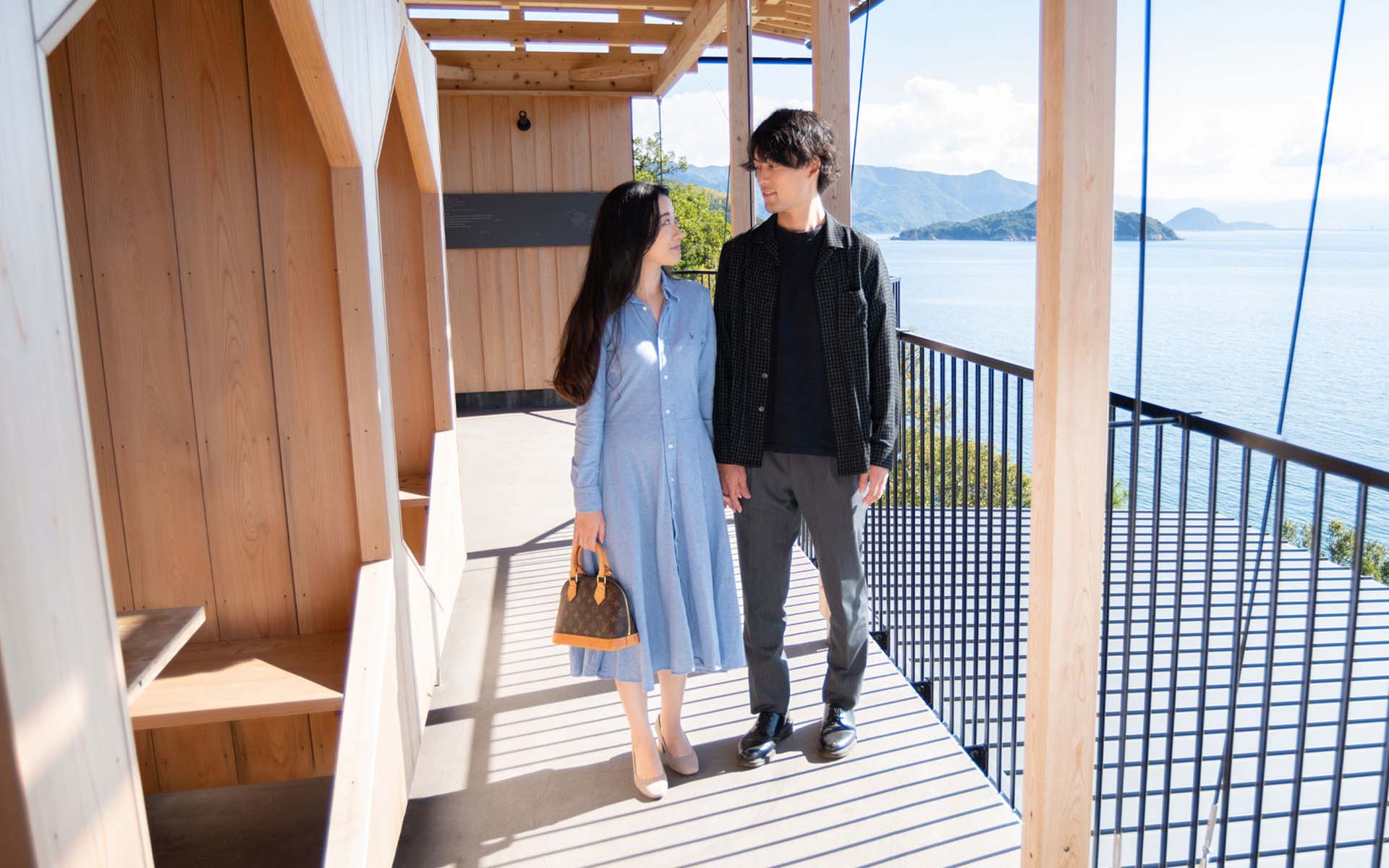 香川県宇多津町に新しくできた「四国水族館」でウエディングフォトが可能です。館内の水槽前はもちろん、屋外で躍動感あるイルカと撮影はいかがでしょうか。美しい水面をバックにお二人の想い出をたくさんのお魚さんたちがお祝い。
